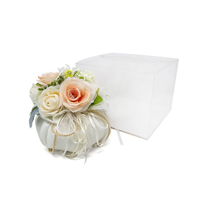 CM-124 Puffo maxi profum. d15x15h con fiori e scat.pvc