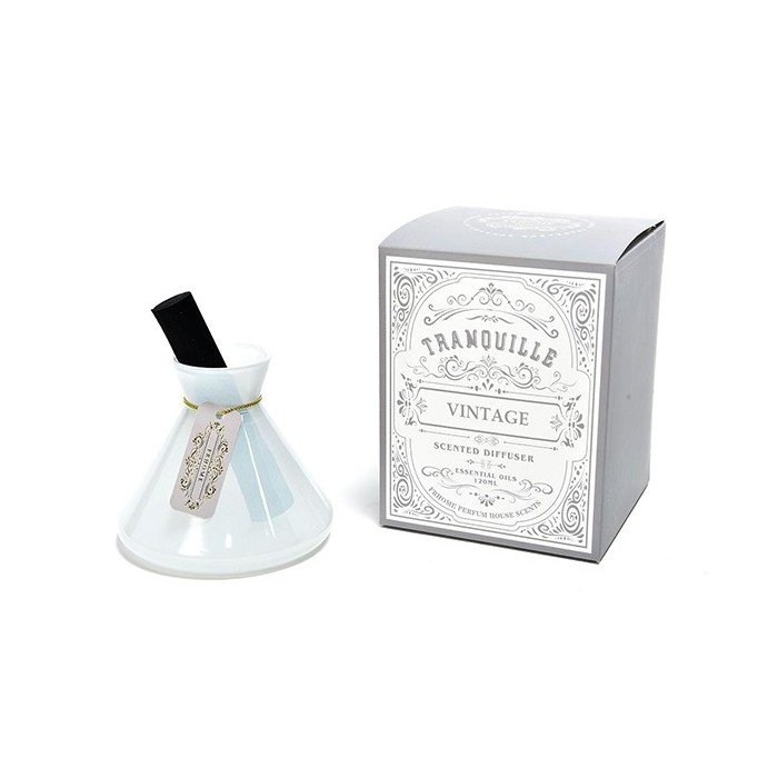 00725 Diffus.essenza vtr conico h12,5 c/bacchetto 120ml GRIGIO cocco vanigliato