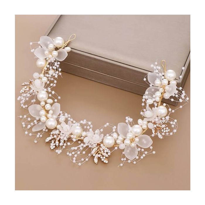 CM-04750 Coroncina con fili perle+fiori+perle gdi c/43241
