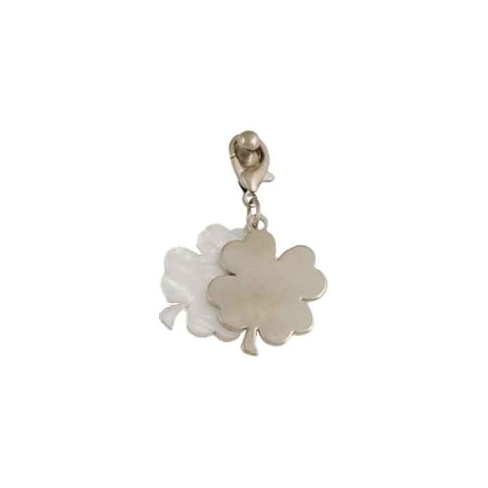 CHSP/373 Ciondolo doppio QUADRIFOGLIO bianco/ACCIAIO
