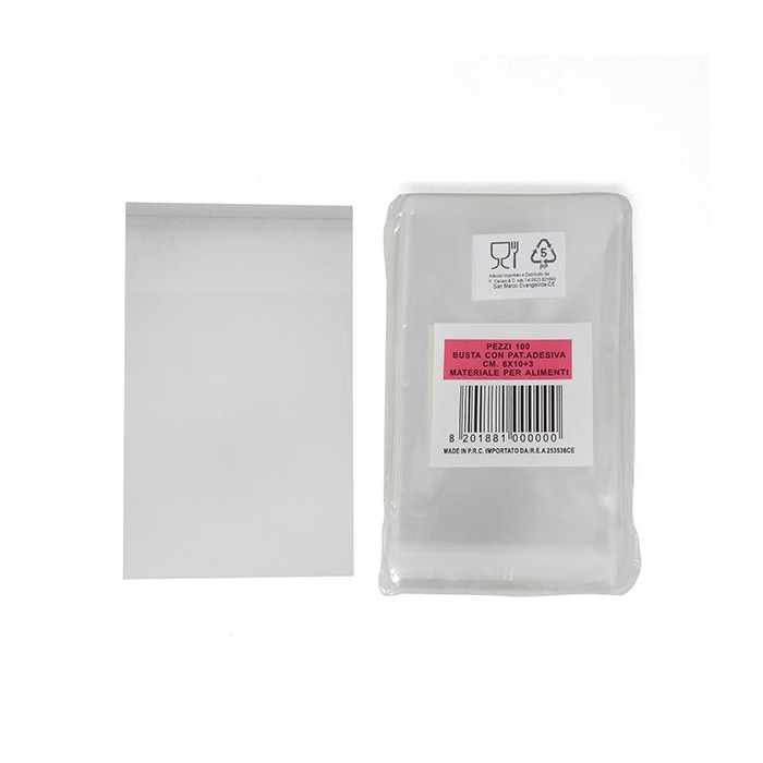 BCP810 Conf.100pz bustine x alimenti 8x10 c/adesivo
