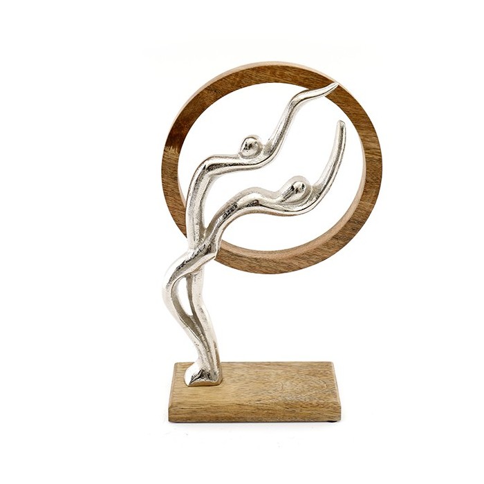 /OR 1673 Statua coppia c/cerchio 19x31h alluminio/mango