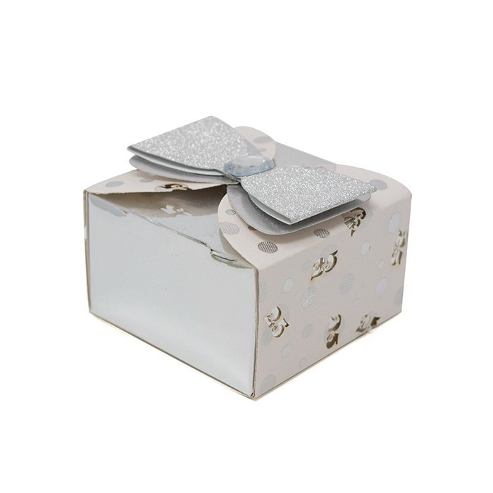 /L1790 Scatola cart. 6,5x6,5x5 c/fiocco NOZZE ARGENTO