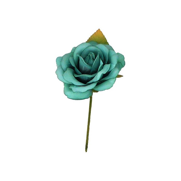 /CK8107-PETR Rosa aperta d.8,5 c/foglia stoffa PETROLIO