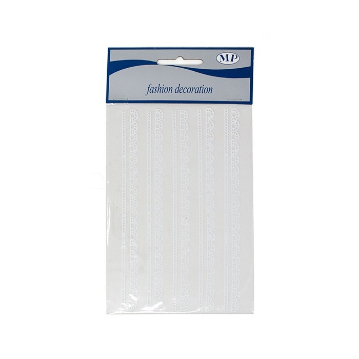 /T040-02 Conf. 10pz strisce RICAMI 2mod. adesivi bianchi