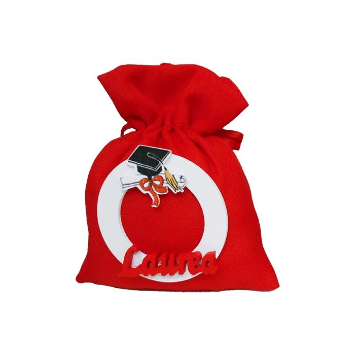 /K5088 Sacchetto 9x11 cotone c/cerchio e scritta laurea ROSSO