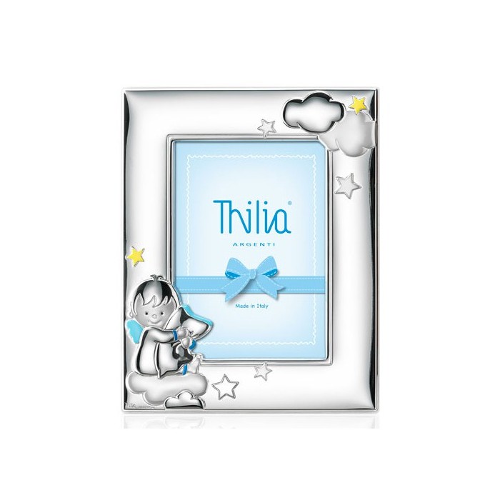 /444442 Cornice bimbo c/cuscino 13x18 retro legno CIELO
