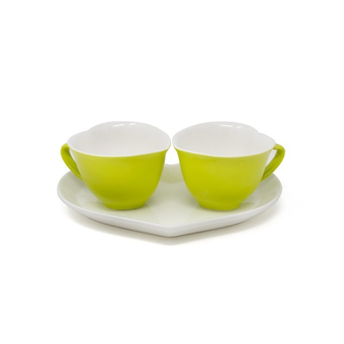 /1007015 Set 2 tazze cuore c/piattino GREEN