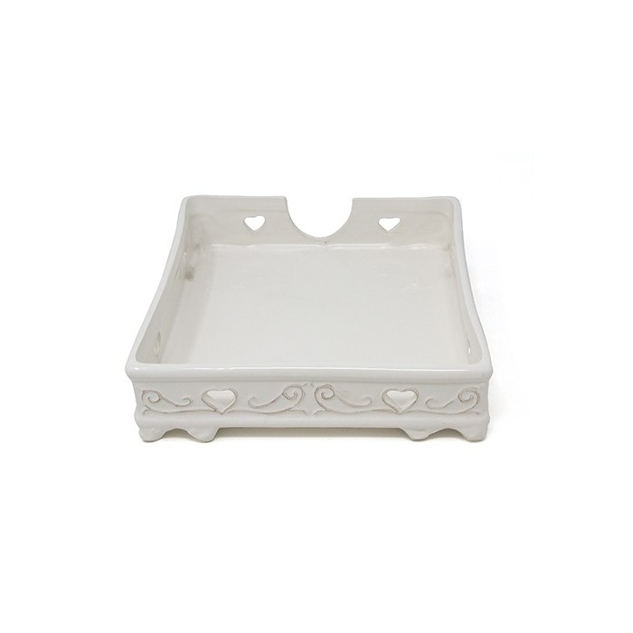 /1117014 Vassoio picc. cm18 ceram.heart bianca