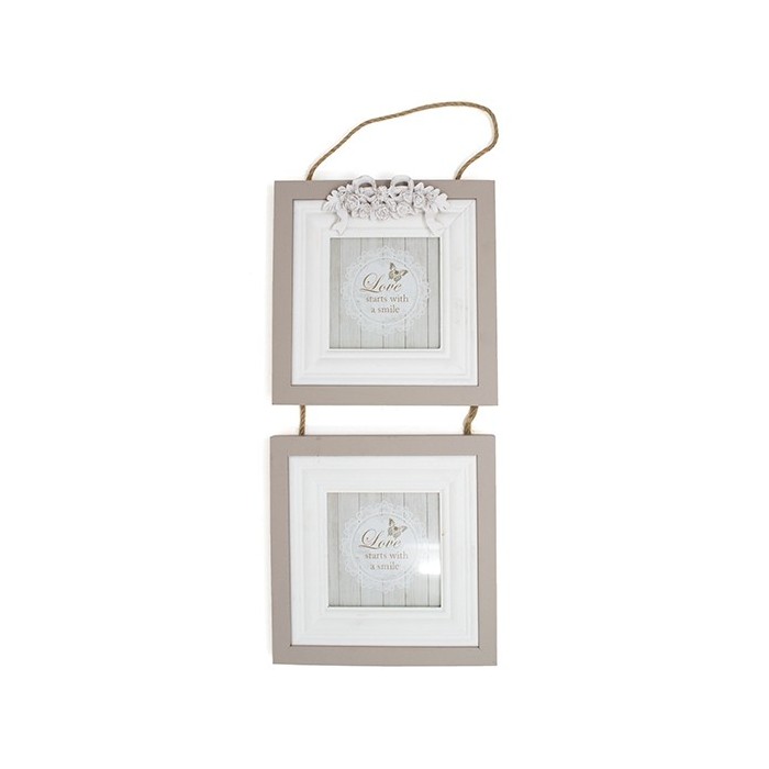 /1129011 Portafoto 10x10 a due legno FIOCCO bianco/tortora