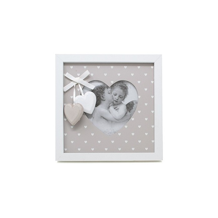 /1129058 Portafoto cuore10,5x10,5 legno 2col.ass. pois/cuori