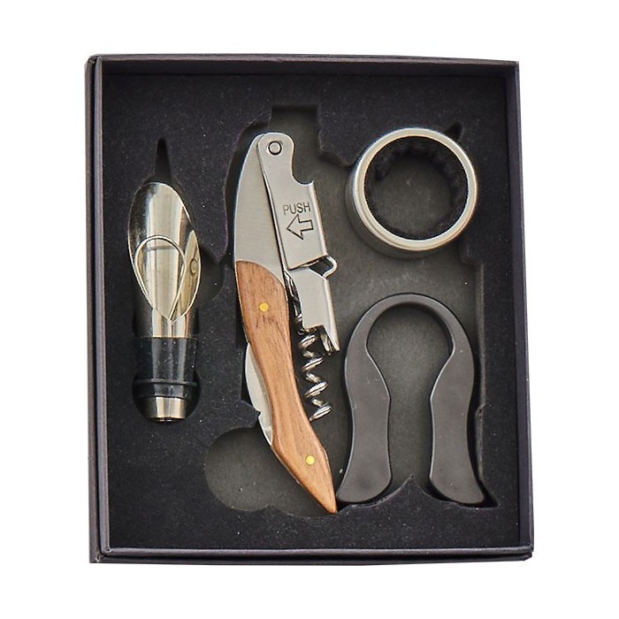 /1245003 Set 4 pz vino ACCIAIO/LEGNO c/scat.regalo