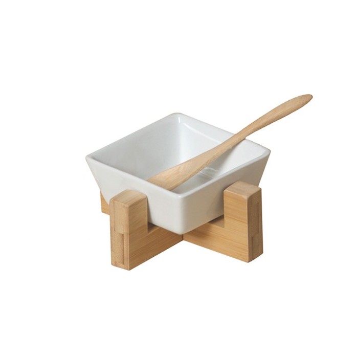 /CB 1064 Ciotola QUADRATA ceram. c/base legno (ex TB 1240)