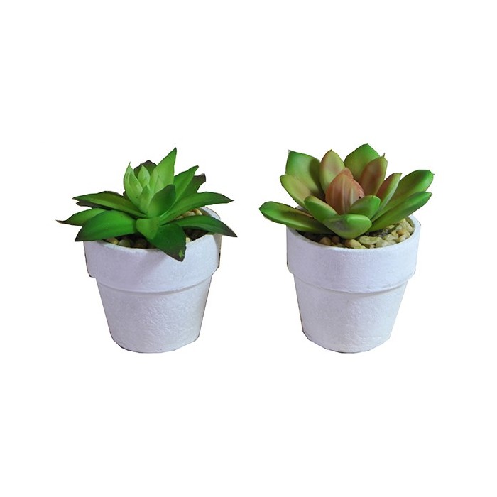 /QLUX20154 Pianta grassa artif. h7 2mod. vaso BIANCO