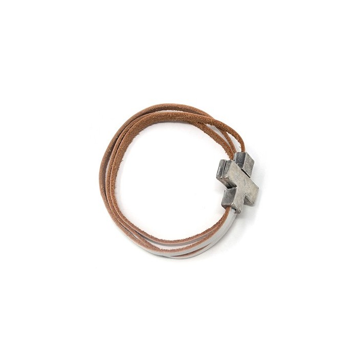 /BR260 Bracciale cuoio AVORIO c/croce calamita