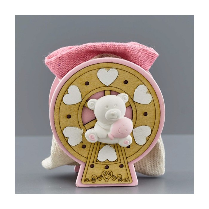 1067371 Portaconf. GIOSTRA legno h8 c/orsetto e sacch. ROSA
