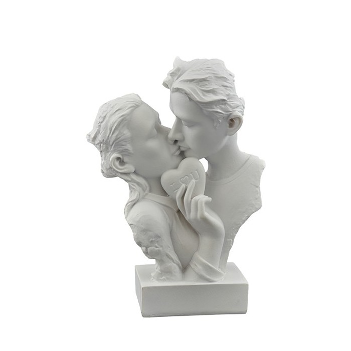 1354006 Statua coppia cuore picc. h15 res. BIANCA