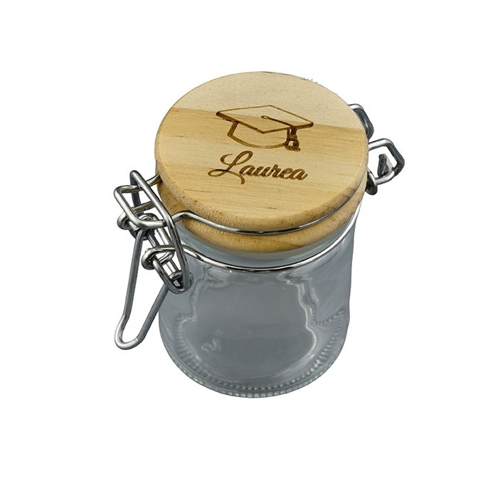 1338022 Barattolo vetro d.5x7h tappo legno LAUREA