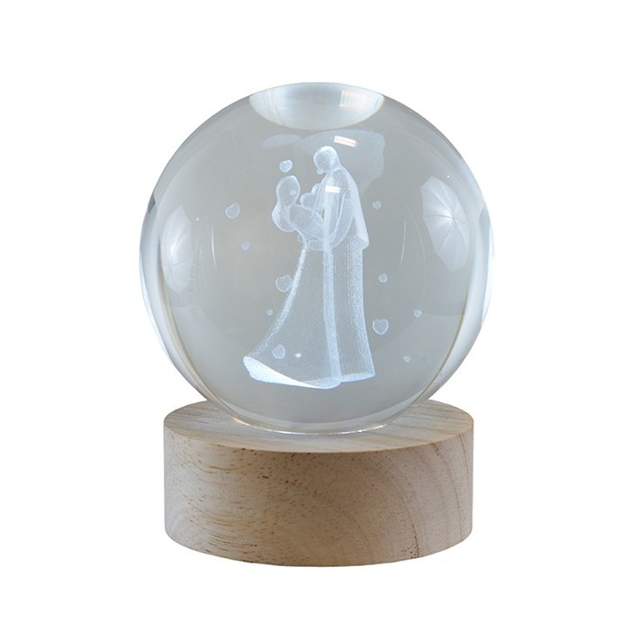 10181216 Globo led COPPIA SPOSI gde d.8 vetro+base legn c/scat.regalo